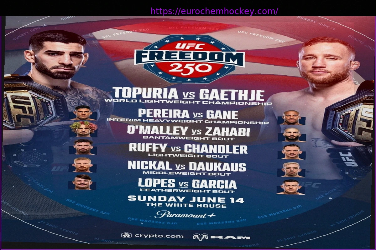 - Sunday, June 14th: The Ellipse will again host the UFC Freedom 250 Fan Fest from 3:30 p.m., and the UFC Freedom 250 Watch Party will commence at 8 p.m. ET.